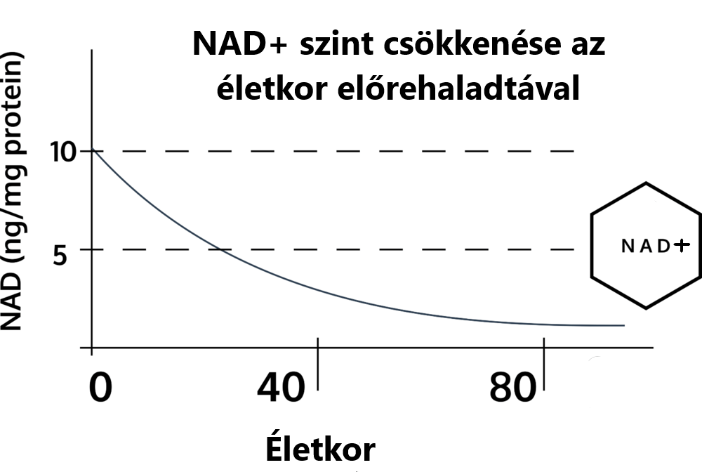 A probléma az, hogy 40 éves kor felett a NAD⁺ szint drasztikusan csökken.
